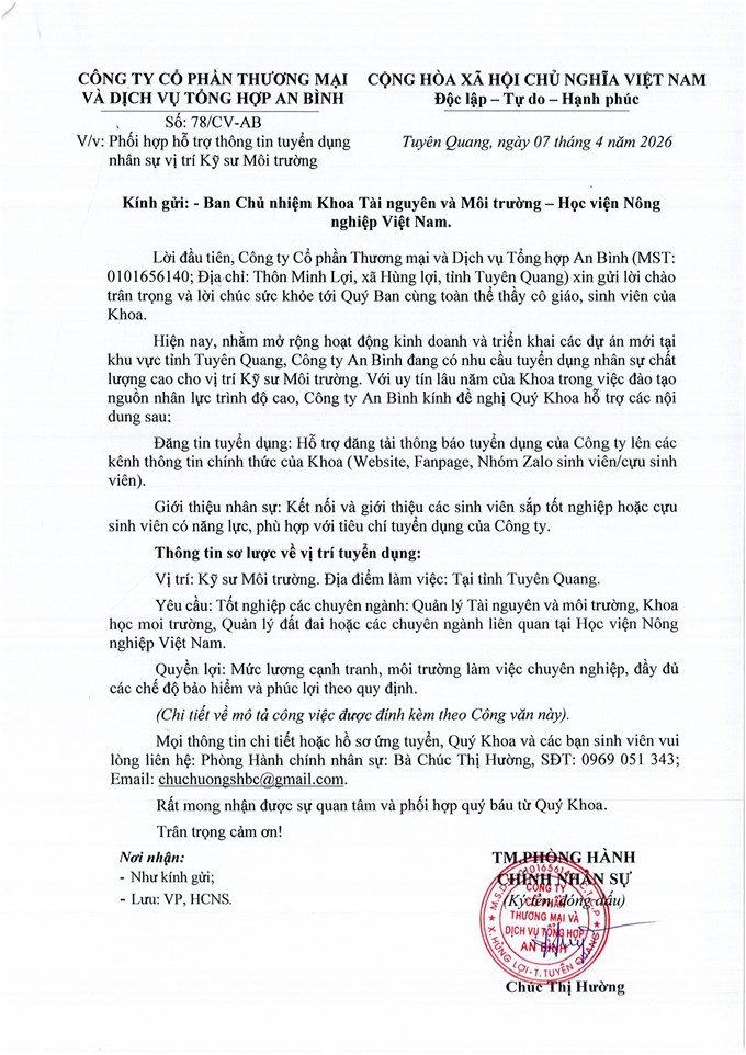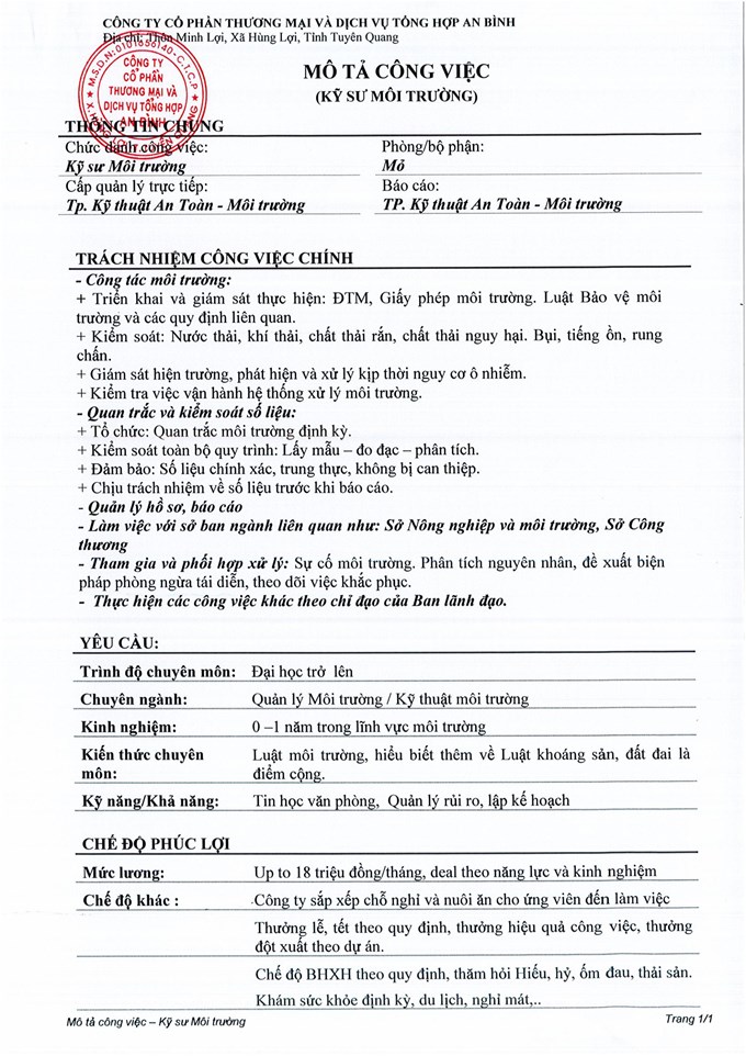 Công ty cổ phần thương mại và dịch vụ tổng hợp An Bình tuyển dụng