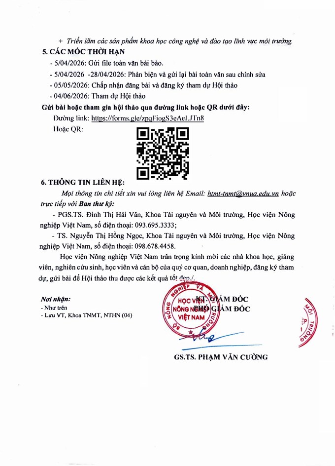 Thông báo thư mời viết bài và tham dự hội thảo khoa học Quốc gia "Môi trường nông nghiệp, Nông thôn và Phát triển bền vững" lần thứ 3