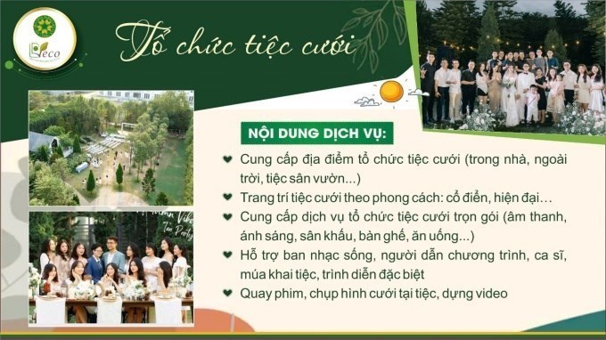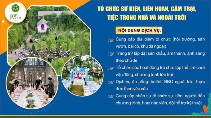 Bên cạnh đó, khu sinh thái còn được trang bị hệ thống dịch vụ tiện ích đa dạng như phòng hội nghị, khu homestay, bungalow dành cho gia đình và nhóm nhỏ. Du khách có thể tham gia hàng loạt hoạt động ngoài trời hấp dẫn từ cắm trại, BBQ, sinh nhật, họp lớp, tiệc cưới cho đến các chương trình team building. Tất cả tạo nên một không gian vừa gần gũi, vừa hiện đại – nơi con người được kết nối với thiên nhiên và với nhau một cách trọn vẹn.