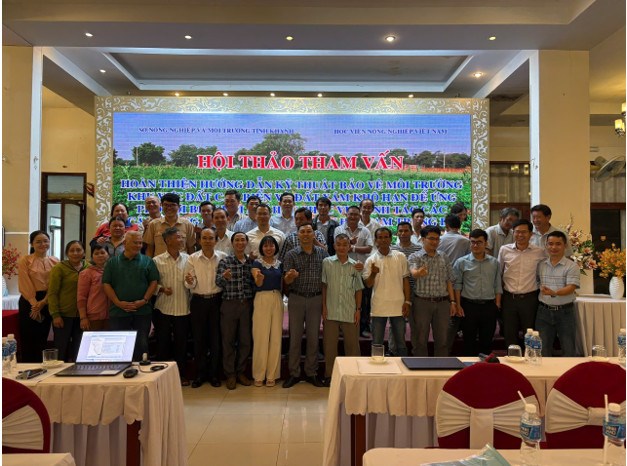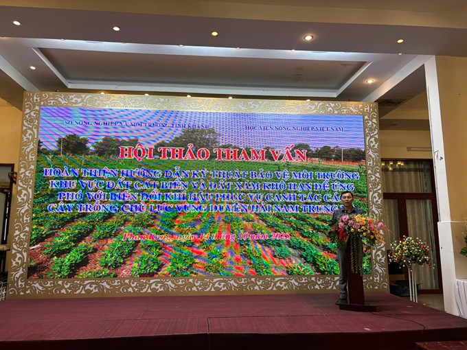 Trong bối cảnh biến đổi khí hậu ngày càng khốc liệt, đất đai khô cằn, nắng gió khắc nghiệt đang đe dọa sinh kế của hàng vạn nông hộ vùng Duyên hải Nam Trung Bộ. Để tìm ra hướng đi bền vững, ngày 14 tháng 10 năm 2025, tại phường Phan Rang, tỉnh Khánh Hoà, Học viện Nông nghiệp Việt Nam phối hợp với Sở Nông nghiệp và Môi trường tỉnh Khánh Hòa tổ chức Hội thảo tham vấn hoàn thiện hướng dẫn kỹ thuật bảo vệ môi trường khu vực đất cát biển và đất xám khô hạn để ứng phó với biến đổi khí hậu phục vụ canh tác các cây trồng chủ lực vùng duyên hải Nam Trung Bộ. Hội thảo quy tụ các nhà khoa học, chuyên gia, doanh nghiệp, cán bộ kỹ thuật và bà con nông dân – những người đang cùng nhau viết tiếp câu chuyện giữ đất – giữ nước – giữ tương lai của vùng đất khô hạn miền Trung.
