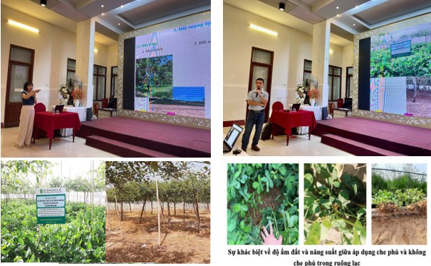 Tại hội thảo, TS. Nguyễn Thu Hà và ThS. Nguyễn Văn Thao – Khoa Tài nguyên và Môi trường, Học viện Nông nghiệp Việt Nam đã chia sẻ những kết quả nổi bật từ các mô hình thí điểm thực hiện các biện pháp kỹ thuật bảo vệ đất cát biển canh tác cây táo và cây lạc. Kết quả cho thấy, đối với mô hình canh tác cây lạc, việc che phủ đất bằng phụ phẩm nông nghiệp được xử lý bằng chế phẩm sinh học giúp tăng độ ẩm đất khoảng 3% tại cùng thời điểm, năng suất tăng 12%, lợi nhuận nông hộ tăng 17% so với đối chứng. Đối với mô hình canh tác cây táo, kết hợp trồng xen cây họ đậu vào mùa mưa và che phủ đất bằng rơm rạ vào mùa khô giúp tăng năng suất 15,8%, tăng độ ngọt quả, giảm công tưới nước và cải thiện cấu trúc đất.
