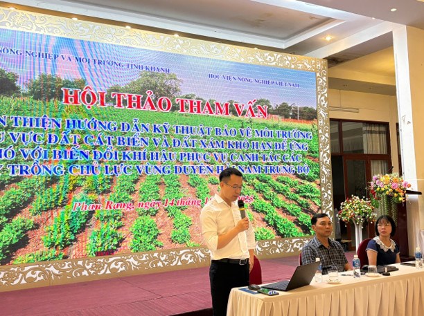 Phát biểu khai mạc, ông Nguyễn Đức Thuận – Chi cục trưởng Chi cục Trồng trọt và Bảo vệ thực vật tỉnh Khánh Hòa nhấn mạnh: “Biến đổi khí hậu không còn là khái niệm xa vời, mà đã hiện hữu trong từng mùa vụ, từng thửa ruộng. Việc xây dựng hướng dẫn kỹ thuật bảo vệ môi trường đất cát biển và đất xám khô hạn không chỉ mang giá trị khoa học, mà còn là hành động cụ thể giúp nông dân làm chủ khí hậu, làm chủ tương lai.”